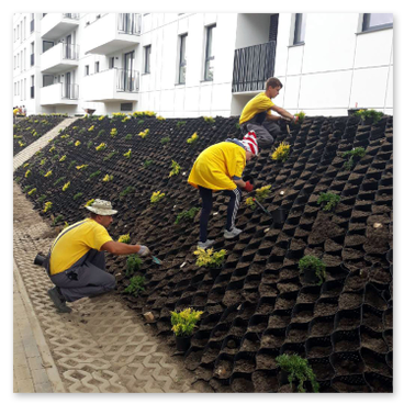 Kształtowanie skarp, formowanie nasadzeń.